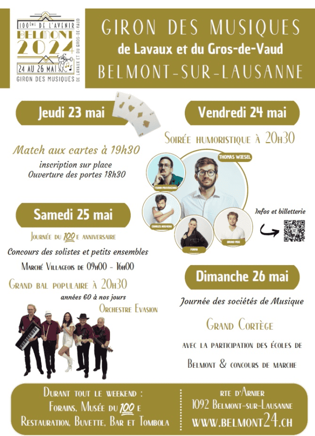 La société de musique l’Avenir fête son centenaire cette année et organisera le 8e Giron des Musiques de Lavaux et du Gros-de-Vaud, rencontre musicale avec 11 sociétés (fanfares, harmonies et brass bands).
