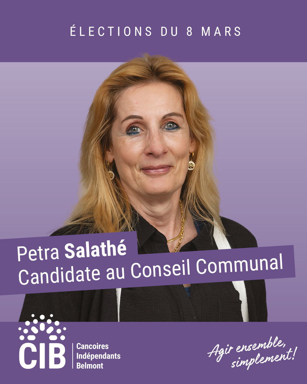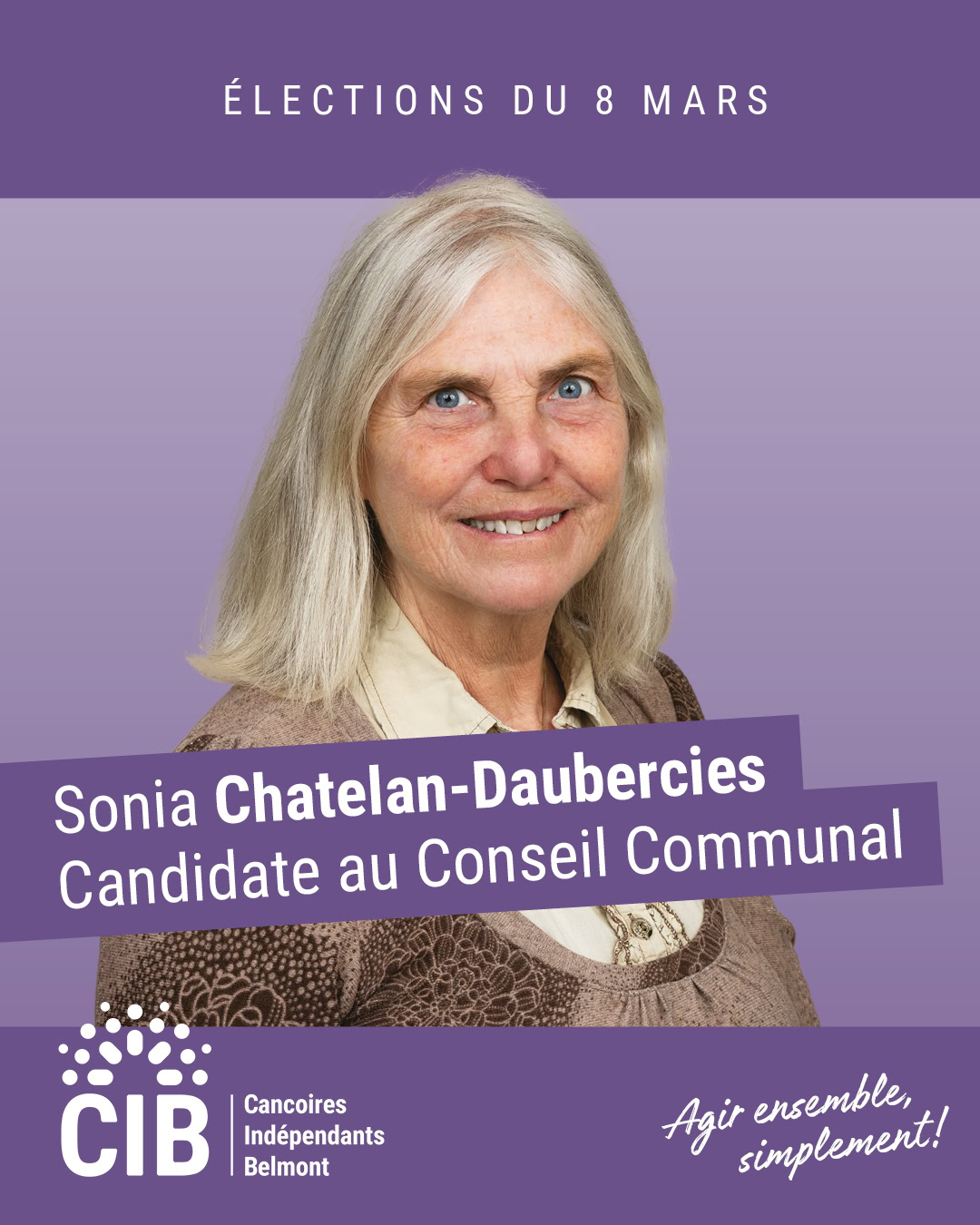 De nature enjouée, à l’écoute et serviable, prendre du temps pour mon prochain est une action que je fais volontiers. Je suis convaincue qu’en dialoguant et en œuvrant tous ensemble, on peut faire de notre village un environnement encore plus agréable au quotidien, que ce soit pour les jeunes ou les plus âgés. Écouter et collaborer avec les idées de chacun est la clé pour avoir une commune où il fait bon vivre.